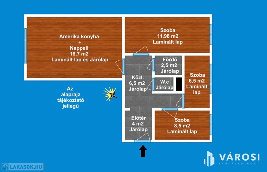 A lakás 1 db amerikai konyhás nappalival, 3 db hálószobával, 1 db fürdőszobával, külön Wc-vel, közlekedővel, előtéttel rendelkezik. Az ingatlan elhelyezkedésre, kialakítása miatt rendkívül sokrétű a felhasználása - akár lakás, vagy befektetési célra -, amely maximálisan kiemeli ezt az ingatlant az átlagos lakások sorából és egyedülálló választássá teszi azt.