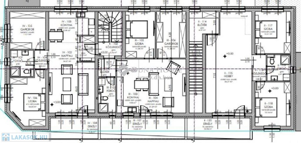 - a lakáselválasztó - és a közösségi tereket elválasztó falak 30-as hanggátló, a belső válaszfalak 10 N+F téglából készülnek