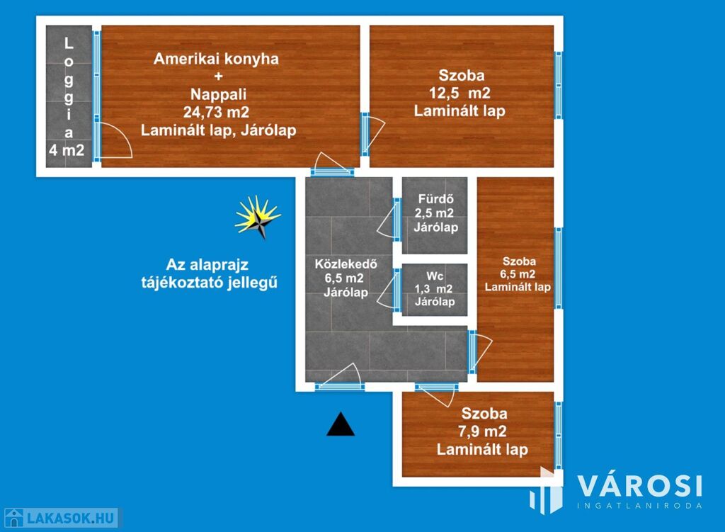 A lakás 1 db amerikai konyhás nappalival, 3 db hálószobával, 1 db fürdőszobával, külön Wc-vel, közlekedővel, előtéttel rendelkezik. Az ingatlan elhelyezkedésre, kialakítása miatt rendkívül sokrétű a felhasználása - akár lakás, vagy befektetési célra -, amely maximálisan kiemeli ezt az ingatlant az átlagos lakások sorából és egyedülálló választássá teszi azt.