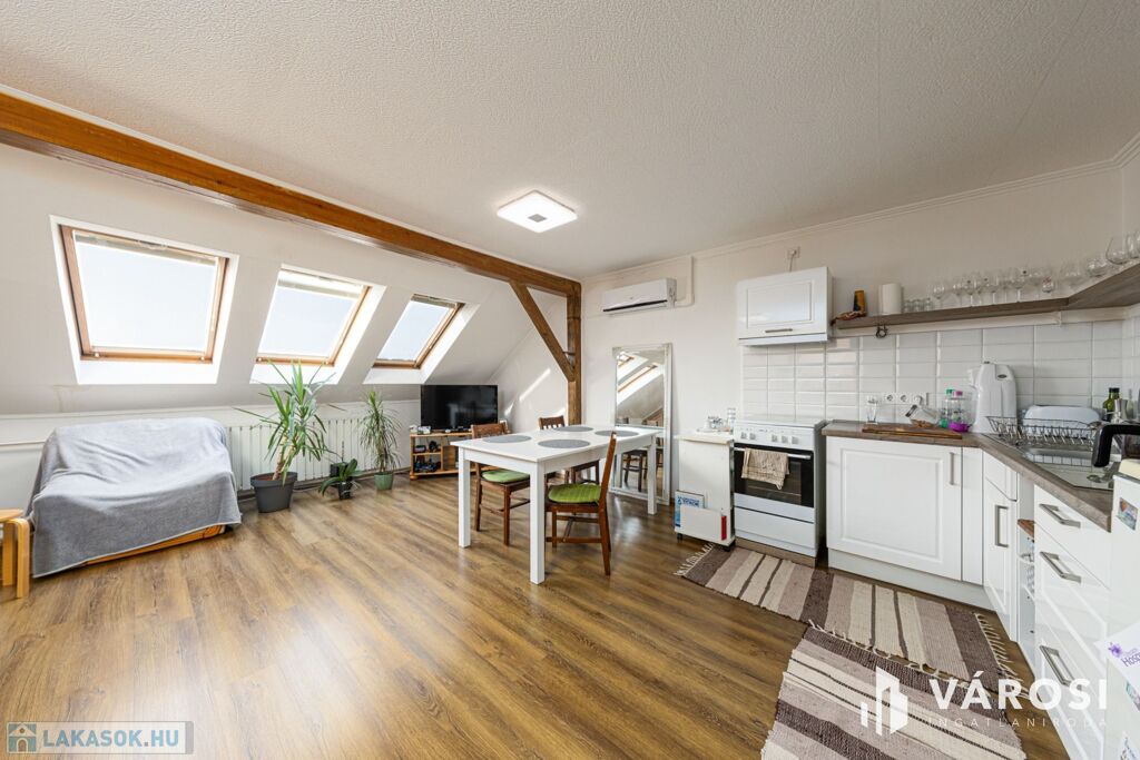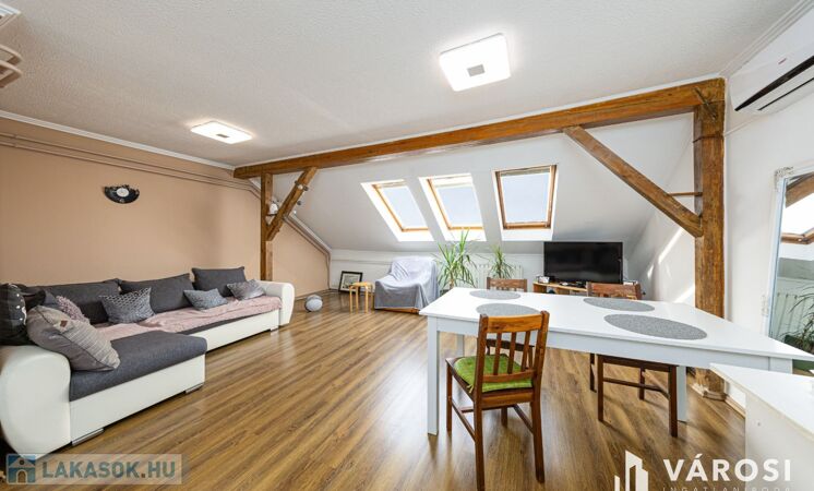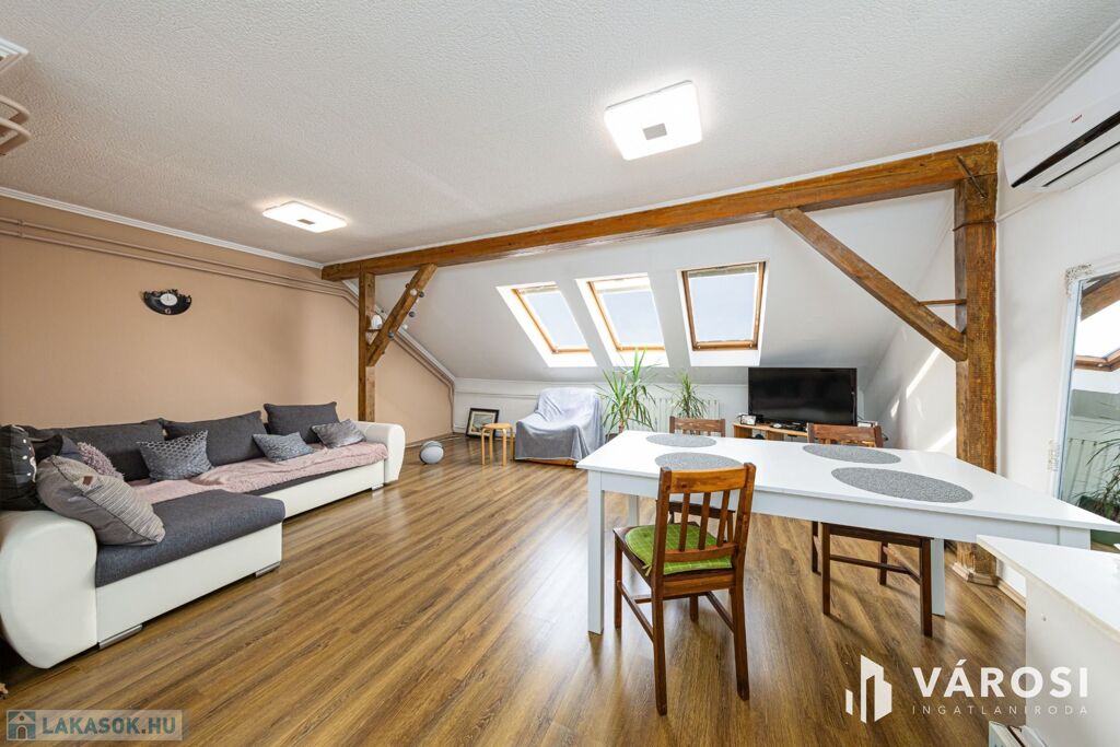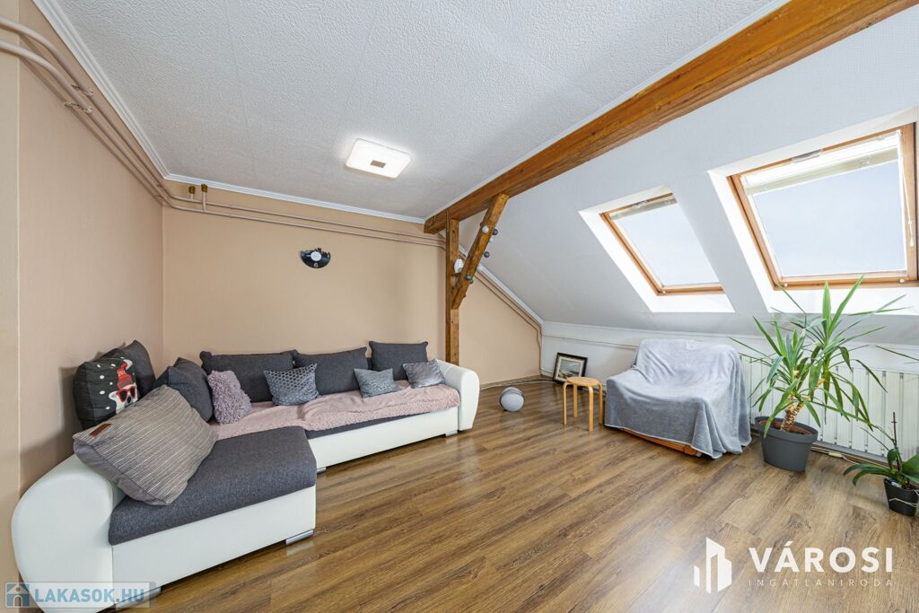 Szeged Felsővároson kínálom megvételre ezt a hangulatos, harmadik emeleti tetőtéri lakást. Ha szereted azokat a tetőtereket, ahol a fagerendák látszanak és ki tudod használni a bennük rejlő lakberendezési potenciált, akkor megérkeztél, most ez a lakás a tiéd lehet.