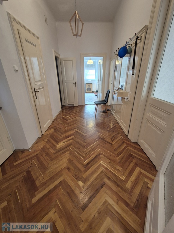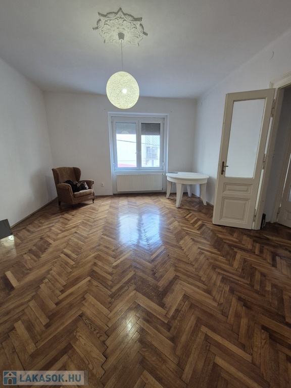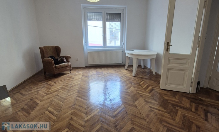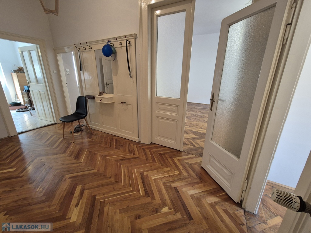 Szeged-Belváros, Kálvin térnél a Madách utcában, 79 m2-es, 2+1 külön bejáratú szobás, magasföldszinti, cirkó fűtésű, szép állapotú téglalakás tehermentesen, azonnal költözhetően eladó. A 9 lakásos társasház kb. 80 éve épült két házként. Egy utcafronti 3 lakásos és egy belső udvari, 3 szintes, 6 lakásos épületként. Az ingatlan a belső házban található, így csendes, pormentesebb. Belmagassága 3 m, falai vastagok. A közelmúltban mindkét ház tetőszerkezetét teljesen felújították. A lakásban 2000-ben felújították a villanyhálózatot, konyhát, fürdőszobát, burkolatokat és a gázhálózatot. Vaillant típusú, zárt égésterű kombi kazán biztosítja a meleg vizet és a fűtést radiátor hőleadókkal, szabályzókkal. 3 éve az összes ablakot dupla üveges műanyagra cserélték. Elosztása jó és alakítható is. Tágas előszobából nyílik minden helyiség: kisszoba, WC, fürdő, konyha (nagy spájzzal) és a két nagyszoba (26 m2, 24 m2). Remek választás lehet, akik a belvárosba vágynak, de irodának, rendelőnek is kiváló. Irányár: 69,9 mFt
