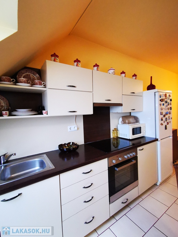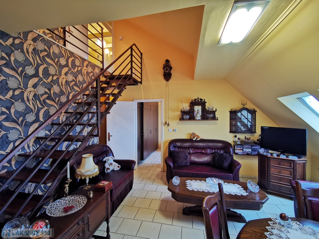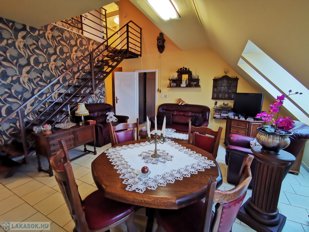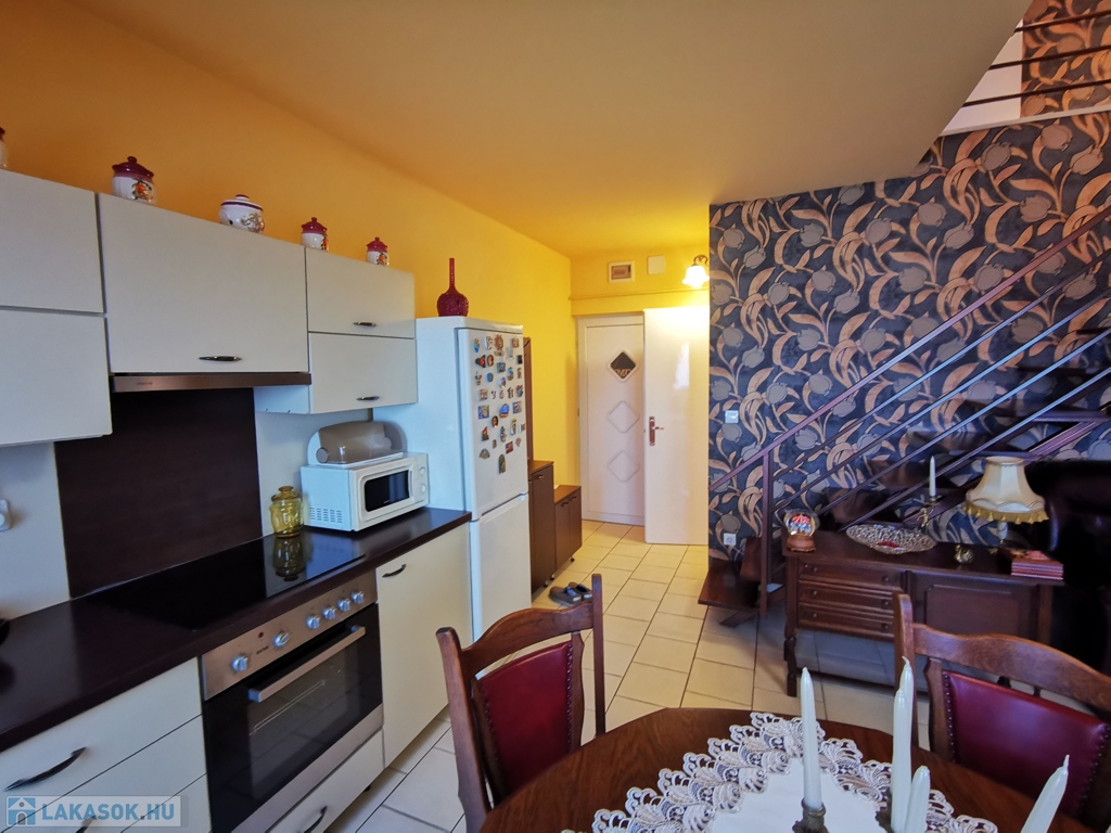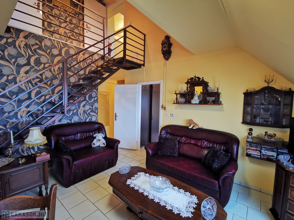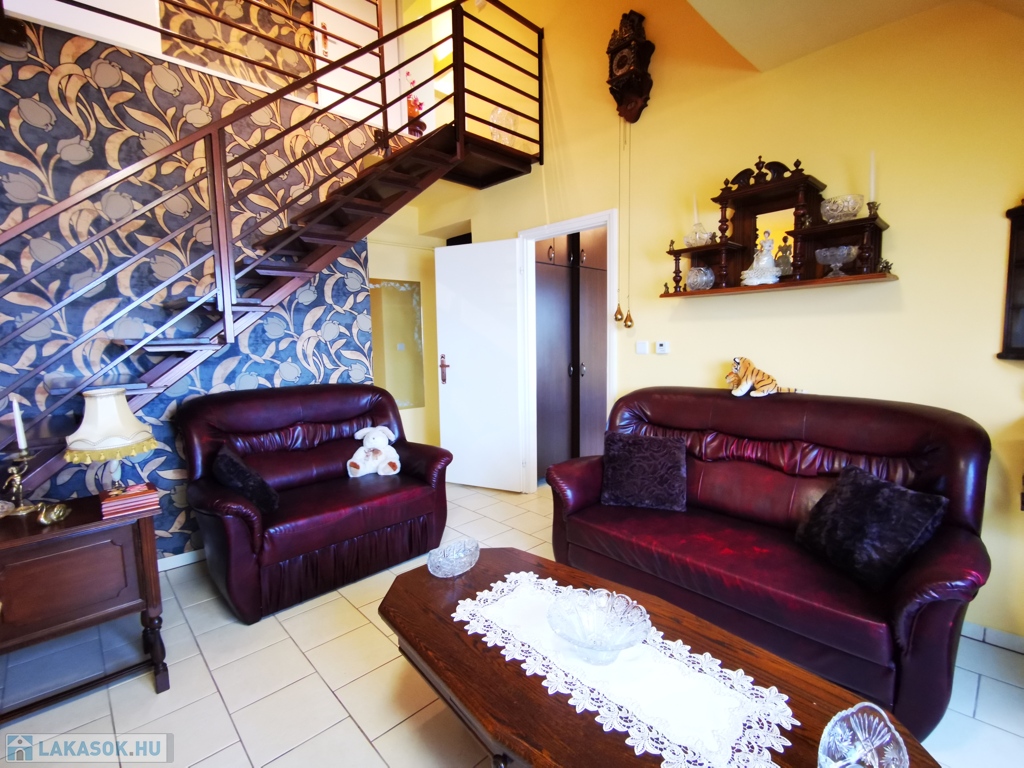 Szeged-Rókus csendes, nyugodt, mégis kitűnő közlekedésű és ellátottságú részén, a Harmónia lakóparkban, 2004-ben épült, kitűnő állapotú társasház harmadik emeletén, belső két szintes, bruttó 82 / nettó 57 nm-es, amerikai konyhás nappali + három külön bejáratú szobás, minőségi anyagok felhasználásával kialakított, egyedi cirló padlófűtésű, kis rezsijű téglalakás, akár a teljes igényes és ízléses bútorozásával együtt is, eladó.