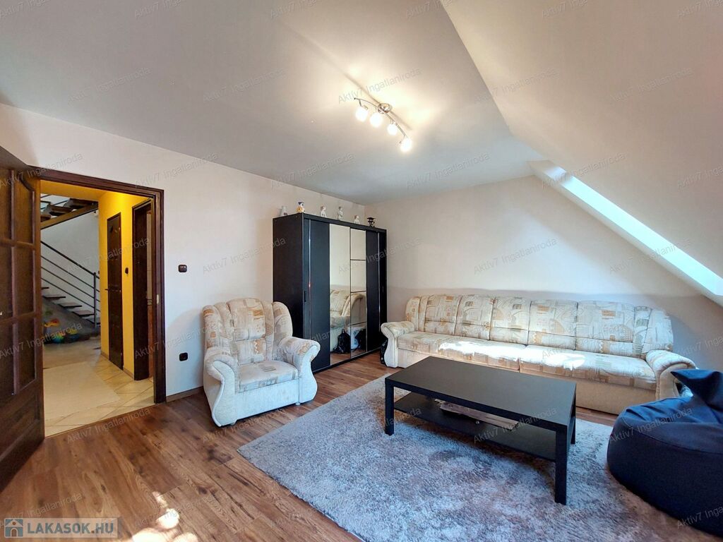 - Belső kétszintes elrendezés: az alsó szinten található a nappali mellett egy hálószoba, a felső szinten pedig két külön nyíló hálószoba – így a családtagok vagy lakótársak kényelmesen elkülönülhetnek.