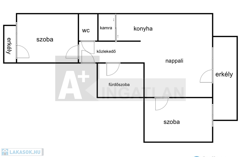 Elrendezését tekintve : a kiváló tervezésnek köszönhetően , igazán jól kialakított , konyha "rejtett " kamrával" ,tágas, napfényes , nappali erkély kapcsolattal , két egymástól távol elhelyezkedő hálószoba , az utca fronti szoba , szintén külön erkély kapcsolattal , külön nyíló , sarok kádas fürdőszoba és mosdó.