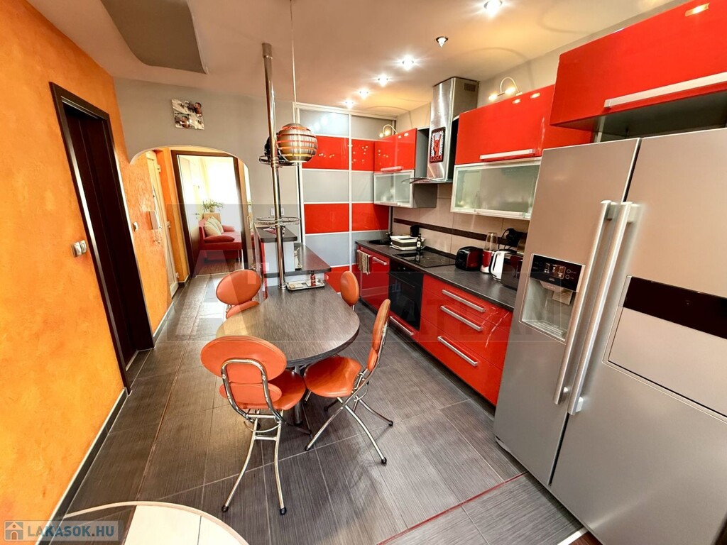Szeged Rókus , Belvároshoz közeli részén , a Hétvezér utcában , 2. emeleti, 75 m2-es, amerikai konyhás nappali + 2 szobás , dupla erkélyes, elegáns lakás, teljes berendezéssel és 13,9m2-es galériás garázs vásárlási lehetőséggel , ELADÓ!
