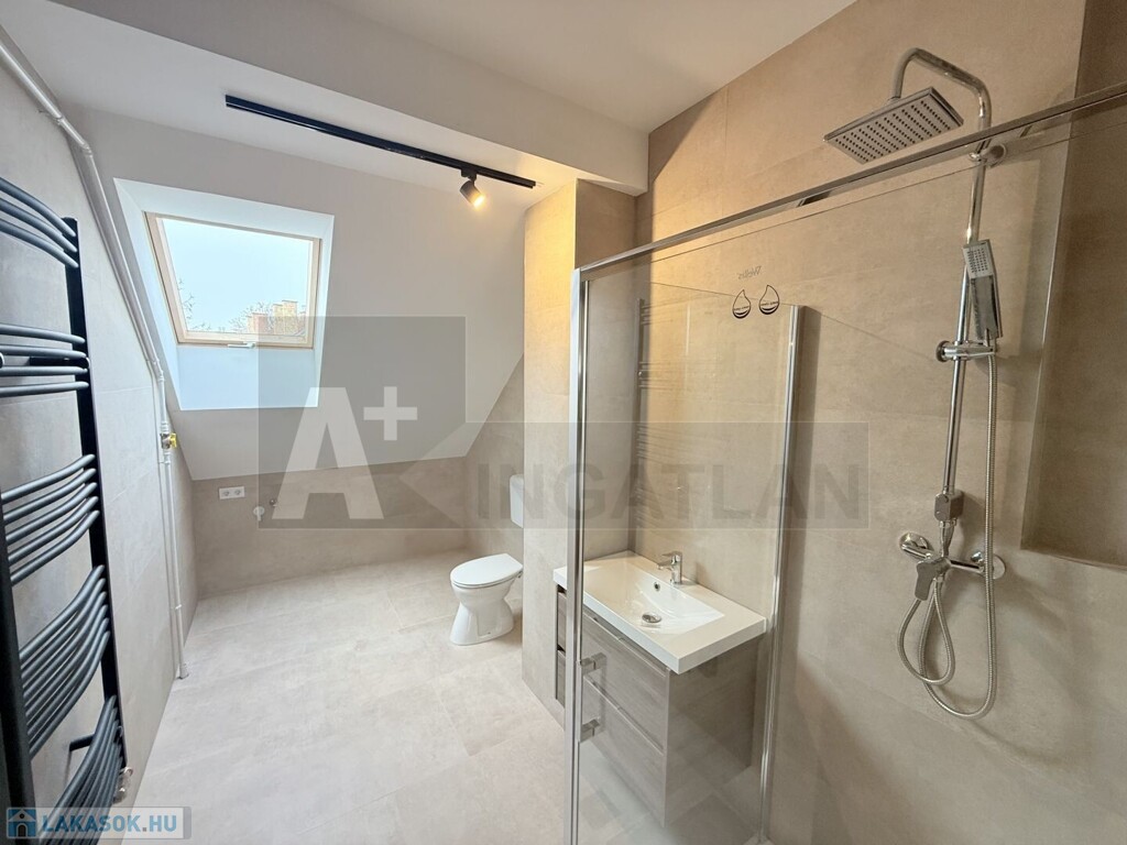 A lakás , igazából most készült el , korábban nem volt beépítve a tetőtér : nos tényleges elmondható , hogy minden új : először is , komoly szigetelést kapott a tető részeinél , új hőszigetelt fa ablakokkal , új aljzat beton , szigetelés és burkolatok , új villamos hálózat , új fűtésrendszer , gázkazán / radiátorok és hűtő fűtő klíma is , új fürdőszoba és új egyedi gyártású konyha , új beépített háztartási gépekkel ..