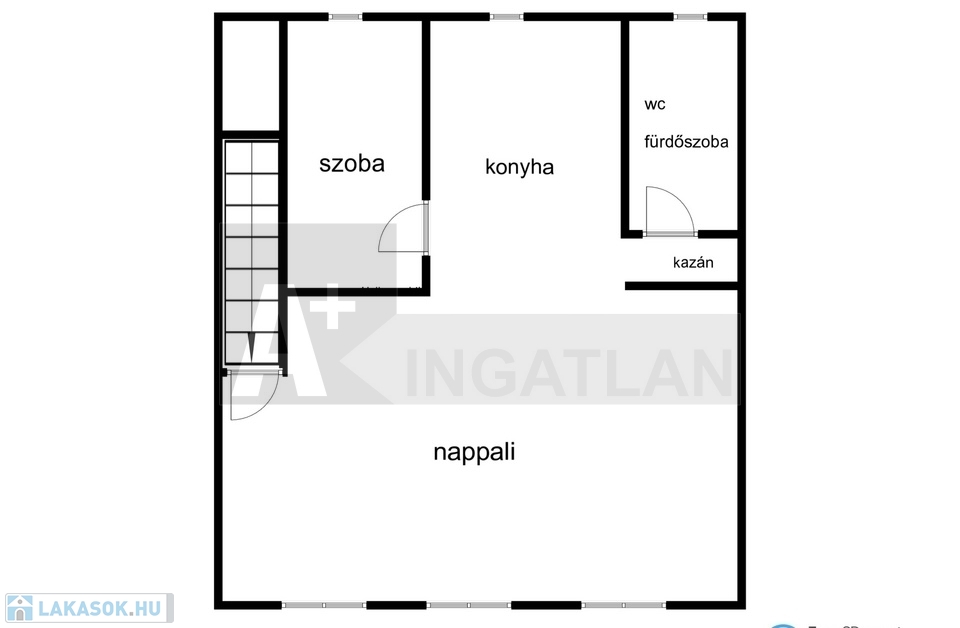 - egy fürdőszoba wc- vel és egy kazán helyiséggel