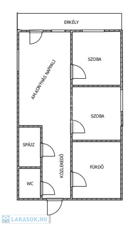 Az amerikai konyhás nappaliból nyilik a hálószoba, illetve innen jutunk ki az udvar felé néző nagy erkélyre is. A gyerekszoba is tágas, jól rendezhető.A fürdő és a wc külön helyiségben található, és az ingatlanban helyet kapott egy spájz is.