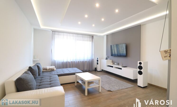 Szeged belvárosában a Novotel Hotel szomszédságában 84 nm-es, Nappali + 2 szobás igényes lakás, garázzsal eladó.