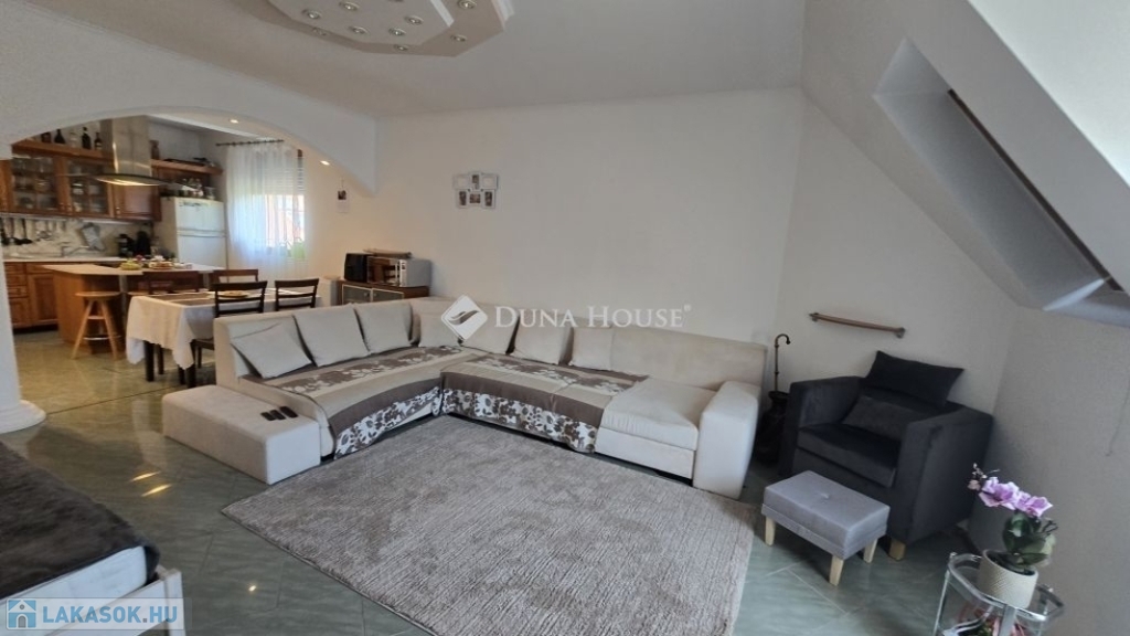 A konyha és az étkező egy légtérben helyezkedik el, így főzés közben sem kell elszakadnia a családtól vagy a vendégektől. Az ingatlant gondos tervezéssel és odafigyeléssel alakították ki, ezáltal minden egyes négyzetmétert maximálisan kihasználva.