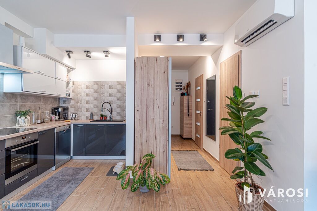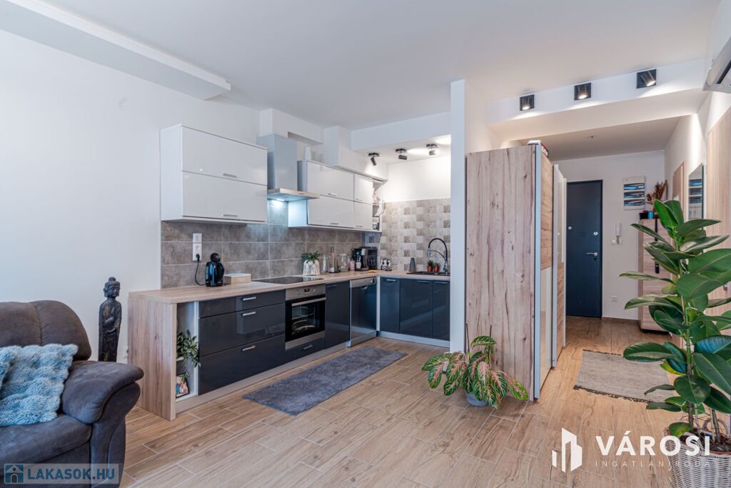 Szeged Felsőváros városrészében, a Rom utcában, eladó, egy 2022 - ben épült ELSŐ emeleti, FIATAL ÚJSZERŰ állapotú 60 nm - es, tégla építésű, amerikai konyhás nappalival, plusz egy szobával, és hatalmas erkéllyel (10 m2) rendelkező lakás. A lakás mellé külön mélygarázsi parkolóhely is megvásárolható.