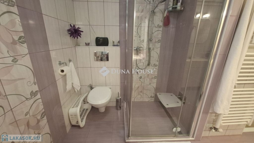 A konyha mellett 2020-ban teljeskörű felújításon esett át a fürdőszobába, amelyben épített zuhanykabin, mosdó, beépített bidés WC, elektromos törölközőszárító van és a megfelelő páratartalomról beépített páraelszívó gondoskodik.
