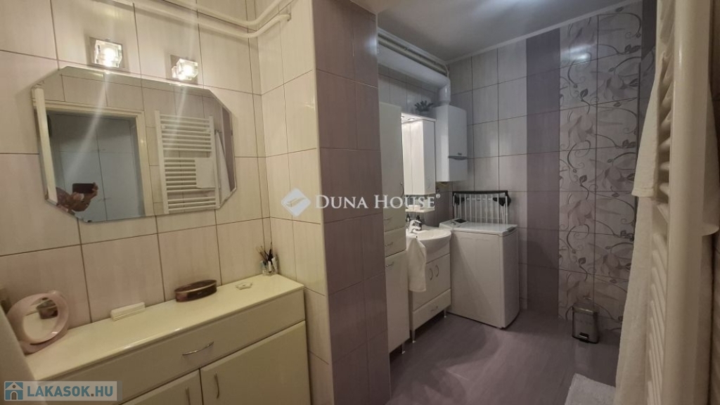 A konyha mellett 2020-ban teljeskörű felújításon esett át a fürdőszobába, amelyben épített zuhanykabin, mosdó, beépített bidés WC, elektromos törölközőszárító van és a megfelelő páratartalomról beépített páraelszívó gondoskodik.