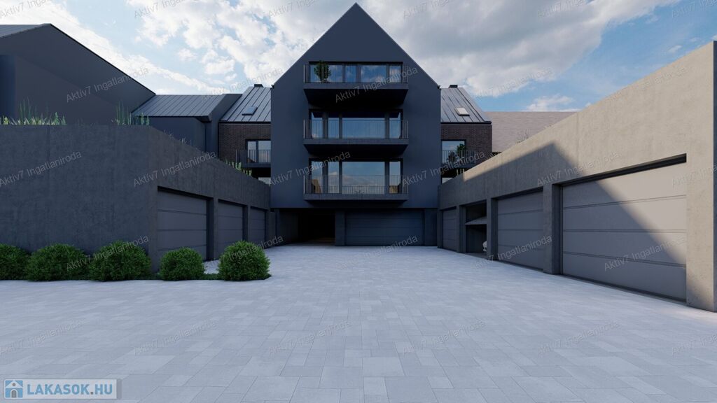 A most épülő társasházunk 4 szintes, liftes, 11 emeleti lakás (mindegyike erkélyes, vagy loggiás), a földszinten 2 lakás ( vagy iroda) kertkapcsolattal, garázsok és beállók kerülnek kialakításra.