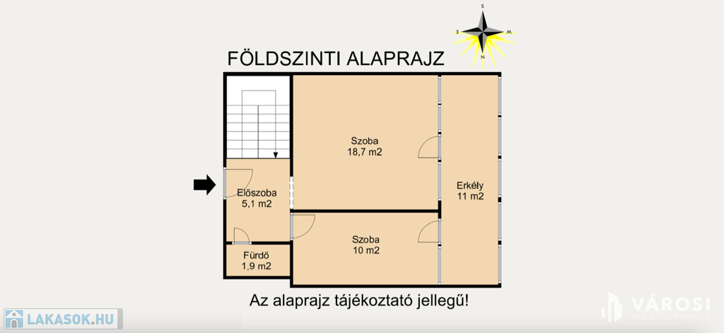 Az ingatlan befektetésnek is kiváló. A 4 db külön nyíló szoba és közös amerikai konyhás nappali miatt akár jelen állapotában is könnyedén kiadható diákoknak, vagy felújítást követően komolyabb haszonnal továbbértékesíthető.