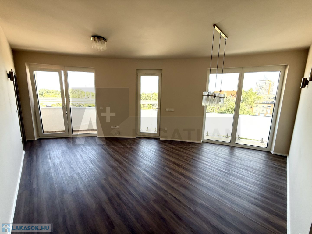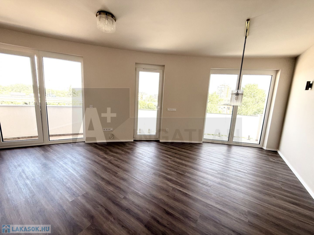 A lakás elrendezését tekintve :59,1 m2 + 11,91 m2-es terasz amely körbeöleli a lakást , az amerikai konyhás nappalival és a két hálószobával is kapcsolódik a kiváló tervezésnek köszönhetően és a tágas előszobából nyíló fürdőszoba .