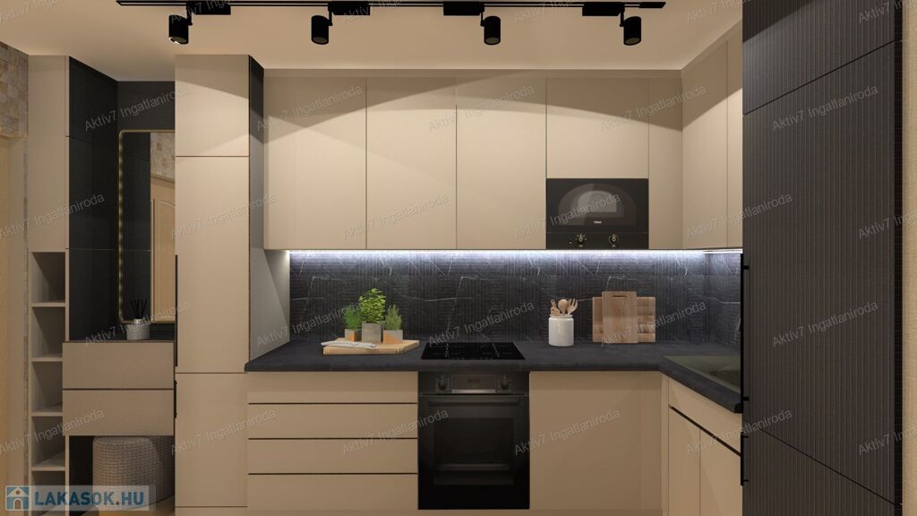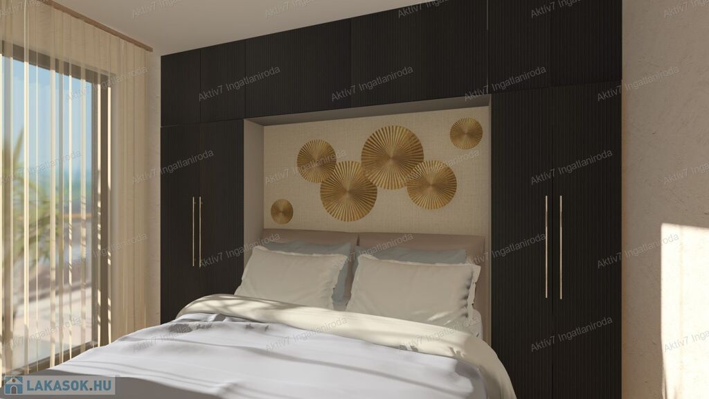 Teljesen készen van, burkolva, festve, elektromos redőnnyel, beltéri ajtókkal, szaniterekkel felszerelve kínáljuk. A vételár a konyhaszekrényt NEM tartalmazza.