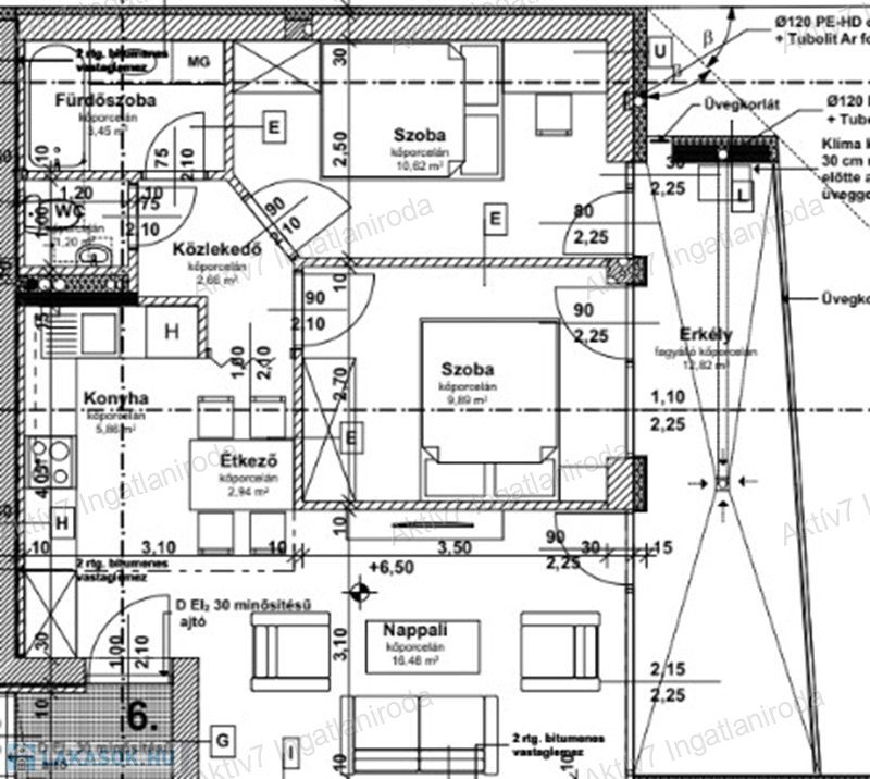 A szóban forgó lakás második emeleti, 53,10 m2 területű, amerikai konyha nappali +2 hálószobás, a hozzá tartozó 12,82 m2 terasszal (a fotók között található alaprajz szerint).