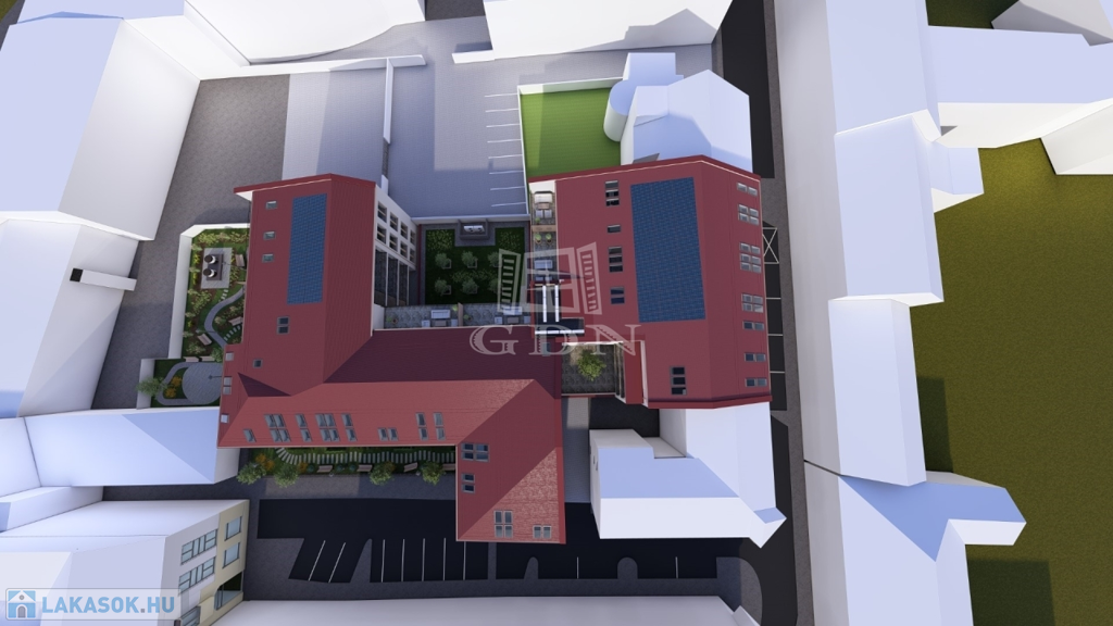 A 4 szintes, 2 lépcsőházból álló társasházban 51 korszerű lakás kapott helyet. A biztonságos parkolást az 55 férőhelyes mélygarázs biztosítja melyek külön vásárolhatók meg.