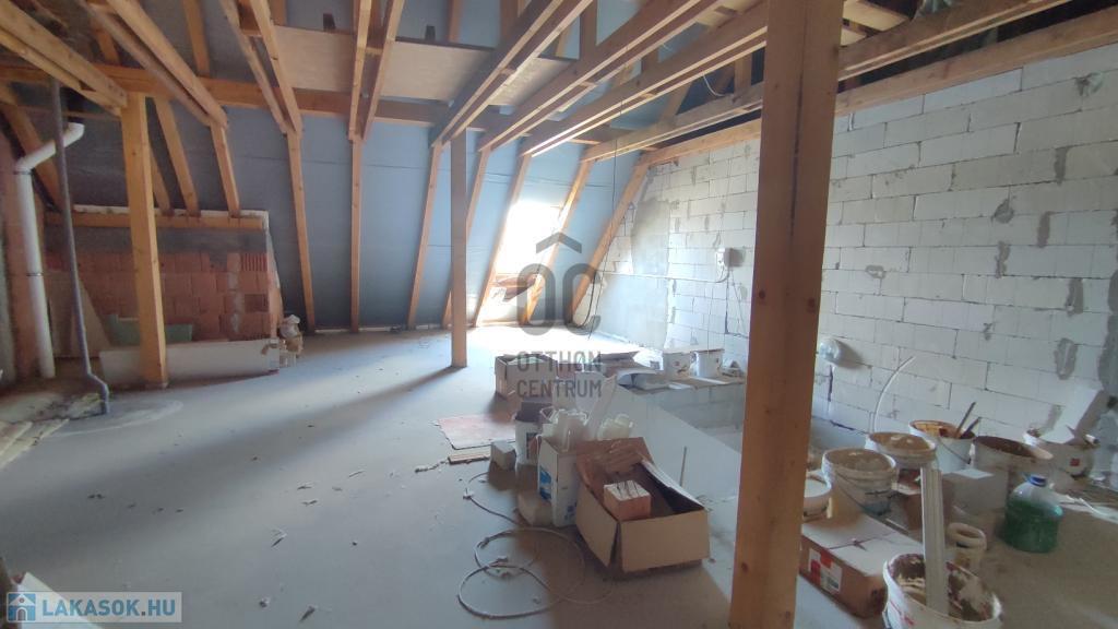 A házban a következő helyiségek találhatóak: a földszinten egy tágas, világos nappali, konyha, zuhanyzós fürdőszoba-mellékhelyiség. Az emeleten 3 élhető méretű szoba, erkély, fürdőszoba-mellékhelyiség, ami nagy beépített káddal rendelkezik. A 40m2 (bruttó 60m2) hasznos területű tetőtéri rész, további beépítési lehetőségek biztosít, de tárolási célra is használható.