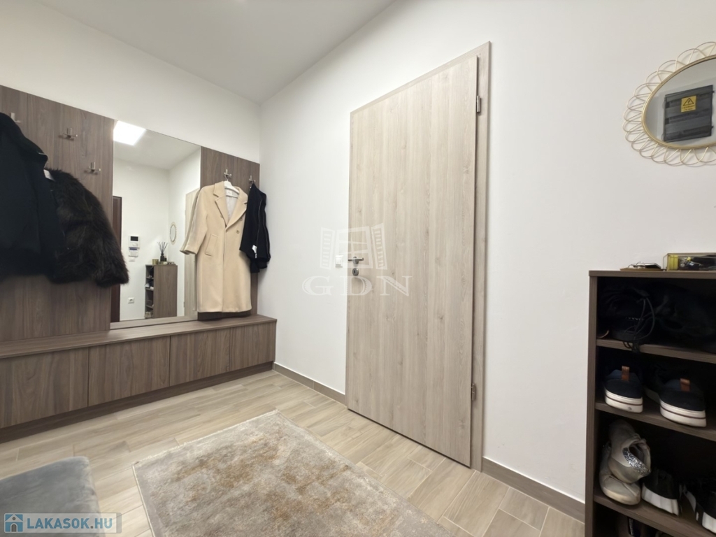 A lakás különlegessége a 52,46 m²-es, részben fedett terasz, amely tökéletesen alkalmas pihenésre, étkezésre vagy vendégek fogadására. A terasz további kényelmét elektromos napellenző biztosítja. Az ingatlan minden ablaka háromrétegű műanyag nyílászáróval és elektromos alumínium redőnyökkel felszerelt, a bejárati ajtó pedig több ponton záródó, prémium minőségű kivitel.