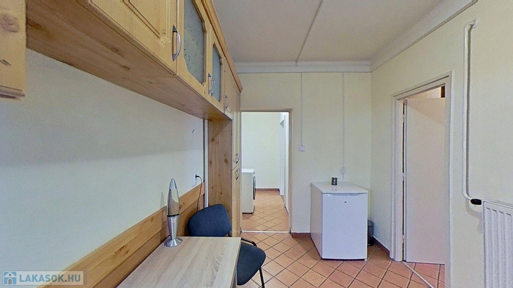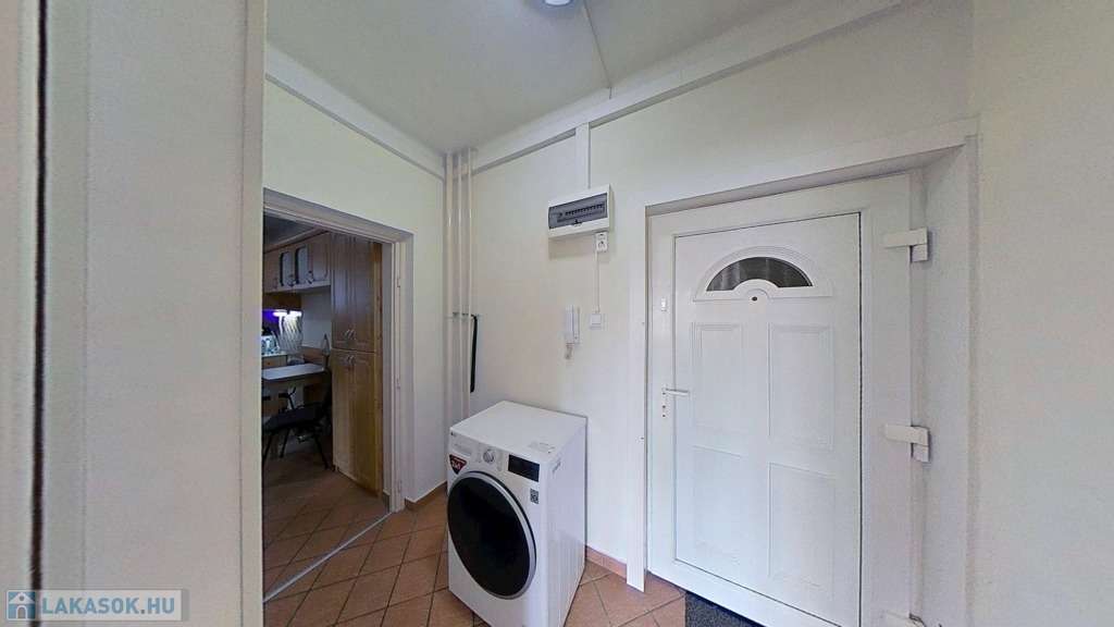 A konyhát a fürdőszobával összekötő folyosó praktikusan beépített szekrényekkel ellátott, illetve egy 2 m2-es saját tároló is tartozik hozzá, közvetlenül a lakás mellett.