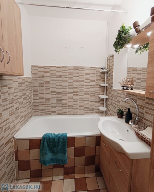 -A fürdőszobában új a bútor, a mosdókagyló és a csap, valamint csőradiátor lett felszerelve. A mosógép kivezetés a konyhába került