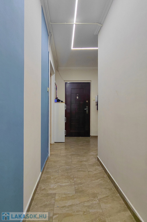 A lakás teljes felújításon esett át: a villanyvezetékek megújultak, modern LED világítás került kialakításra, a vizesblokkok pedig vezetékcserével együtt újultak meg. A minőségi burkolatok, harmonikus színek és a beépített, gépesített konyhabútor egységes, letisztult, szerethető összhatást adnak az egész térnek.