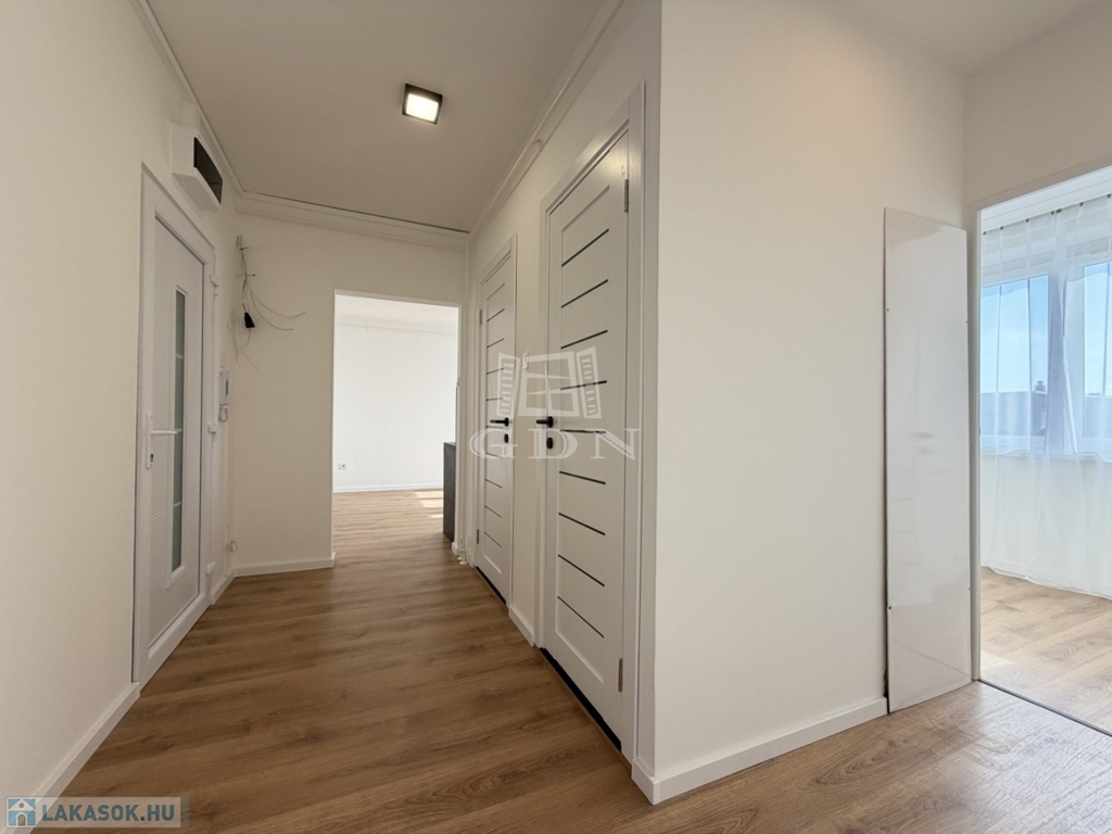 Az átalakítást követően, a konyha átkerült a nappaliba, így, 2 db külön nyíló szoba került kialakításra. A lakásban az összes burkolat cseréje megtörtént. A beltéri ajtók is újak, modern letisztultak. A fürdő is teljesen megújult, RAVAK kád került beépítésre.