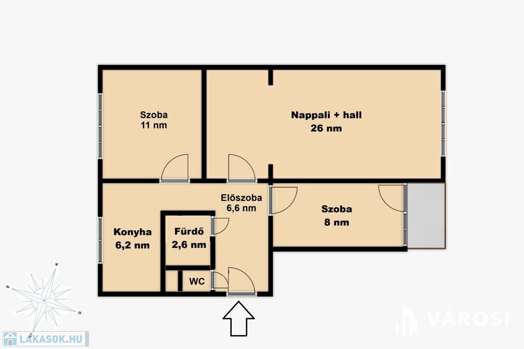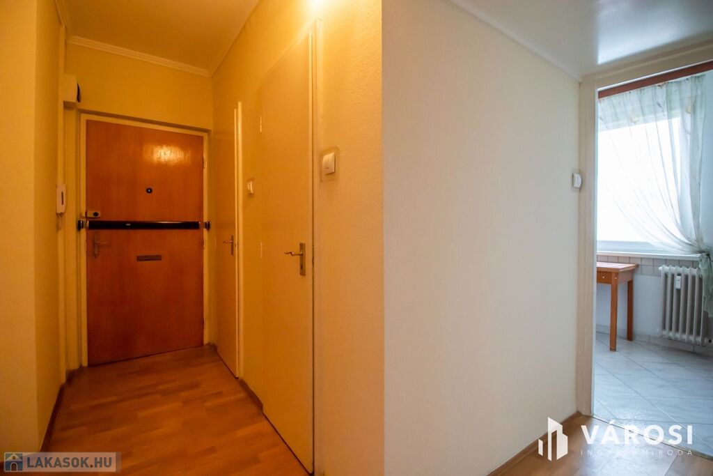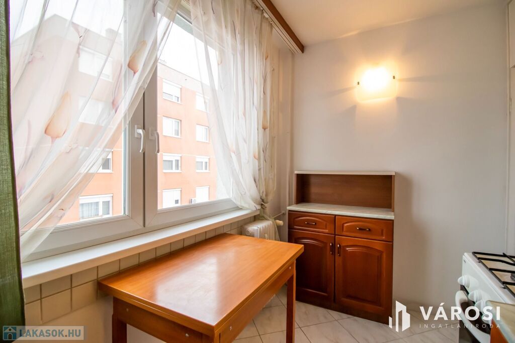 Ez az 7. emeleti, liftes házban levő, nappali + 2 szobás panellakás, a történelmi belvárostól 200 méterre helyezkedik el. A nappali és a beépített erkély a kisszobával délután közepéig fürdik a napfényben. A harmadik szoba és a konyha pedig egy csendes parkolóra néz. A három szoba mindenkinek biztosítja a külön birodalom lehetőségét.