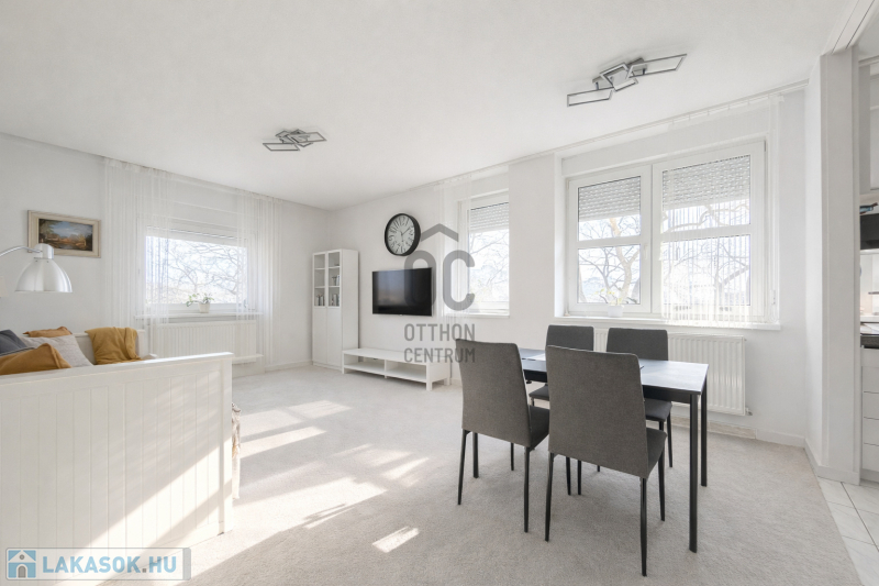 Belváros közelében, rendezett, négyszintes társasház harmadik emeletén kínálunk megvételre egy 63 m²-es, amerikai konyhás nappali + 2 hálószobás, délkeleti tájolású, egyedi cirkófűtéses, kedvező fenntartású téglalakást.