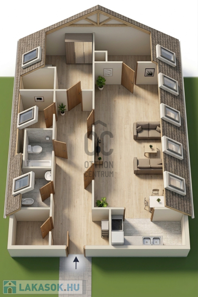 Külön értéket képvisel, hogy a lakás mellett közvetlenül egy hasonló méretű, beépítetlen padlástér található, amely további bővítési vagy hasznosítási lehetőségeket kínál.