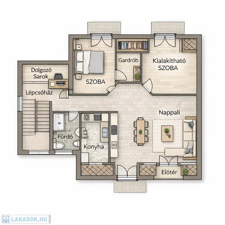 - Külön dolgozószoba – ideális home office-hoz