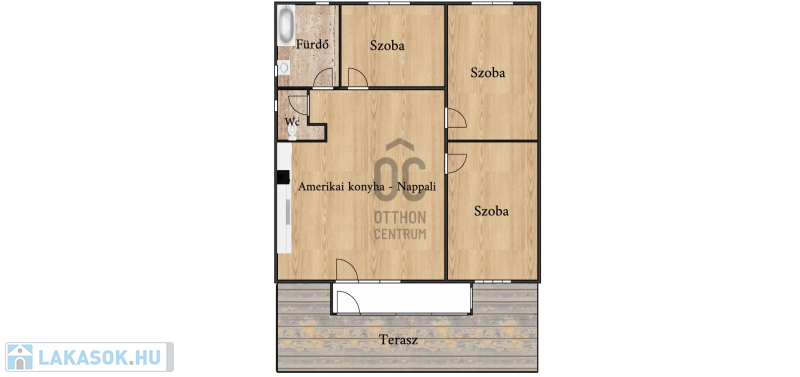 A három hálószobán kívül, a 107m2-en a lakás magában foglal egy hatalmas amerikaikonyha-nappalit, egy saját lépcsőházat, egy fürdőszobát, egy mellékhelyiséget és egy reprezentatív erkélyt.
