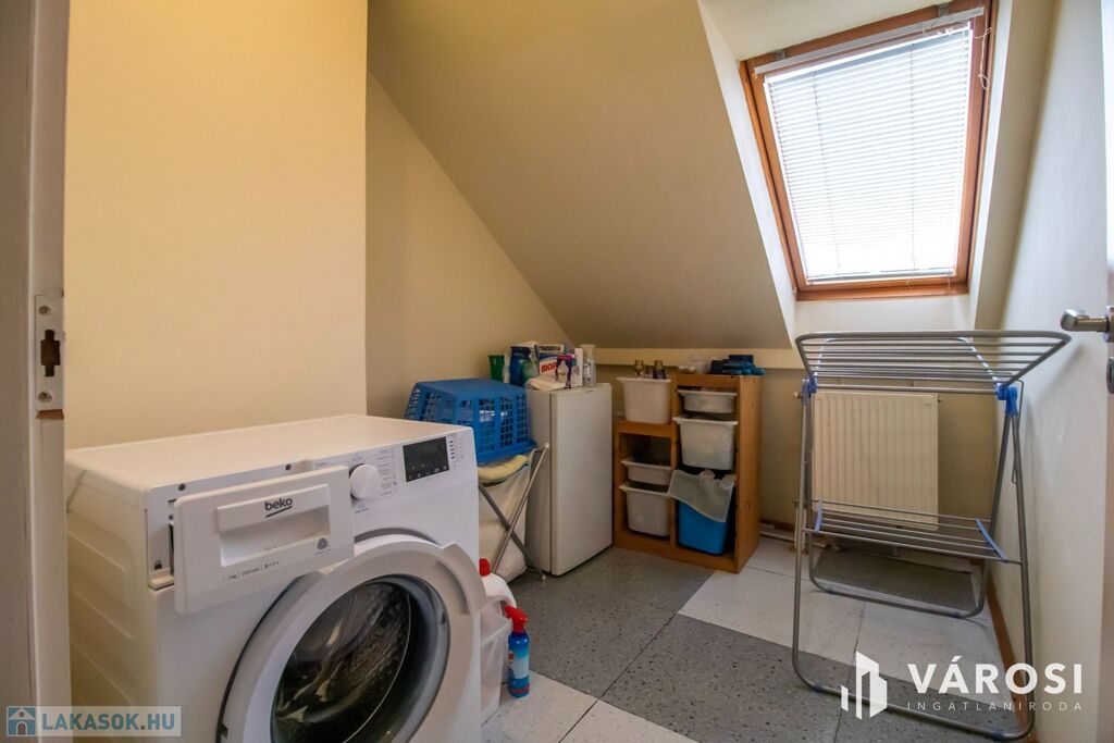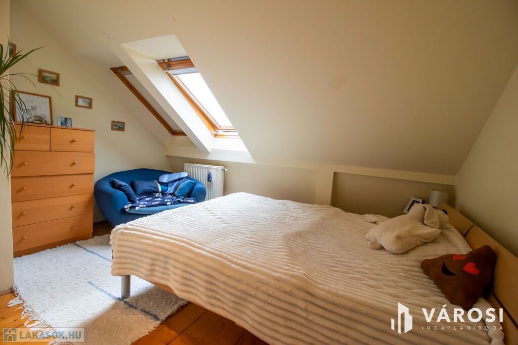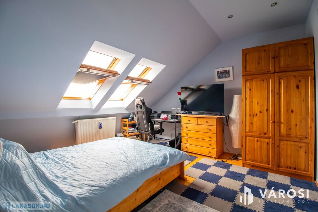 A bruttó 108, nettó 96 négyzetméteres lakás, egy négyemeletes társasház tetejének beépítésével már 32 éve elkészült, de azóta sem kopott a fénye. Minden szép állapotú és ha ez valakinek így tetszik, akkor máris elfelejtheti a felújításokkal járó kellemetlenségeket és költségeket! Egy festés és máris költözhető. Lift sajnos nincs, de nagyon egészséges naponta párszor megmászni az emeleteket.