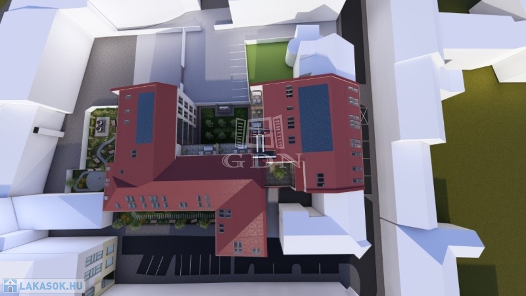 A 4 szintes, 2 lépcsőházból álló társasházban 51 korszerű lakás kapott helyet. A biztonságos parkolást a 55 férőhelyes mélygarázs biztosítja melyek külön vásárolhatók meg.