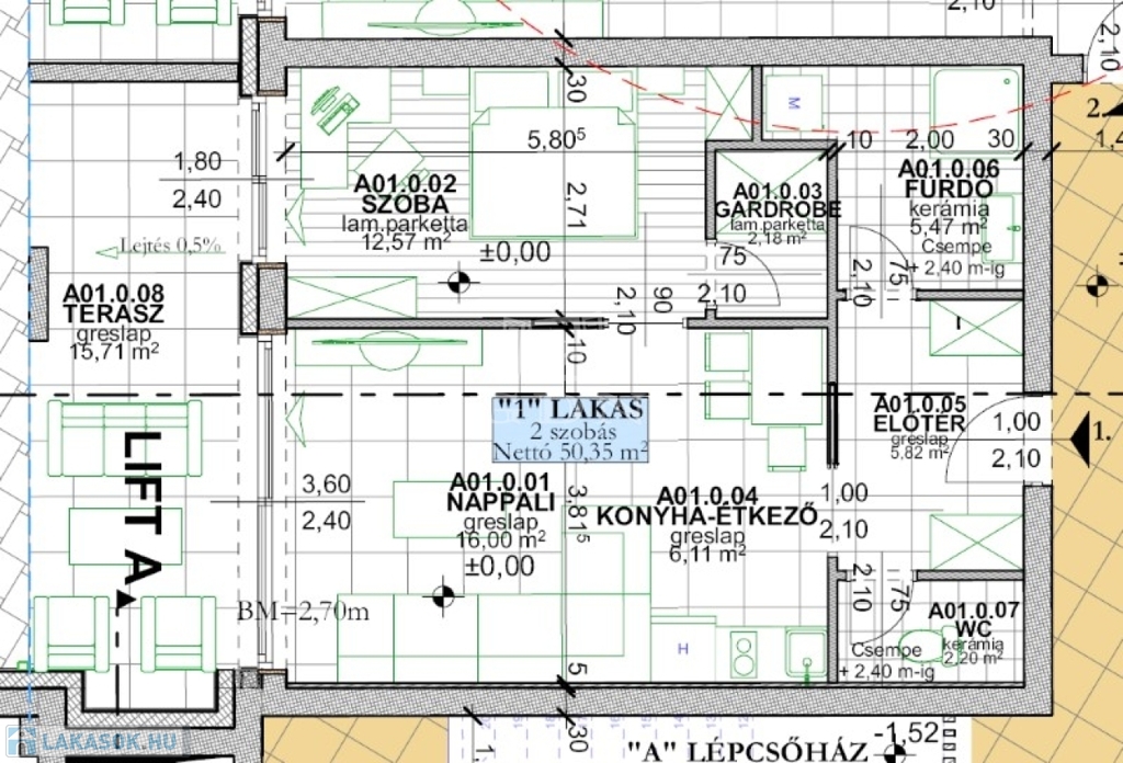 50,35m2|konyha + étkező - nappali, hálószoba, előtér, gardrób, fürdő/wc külön helyiségben