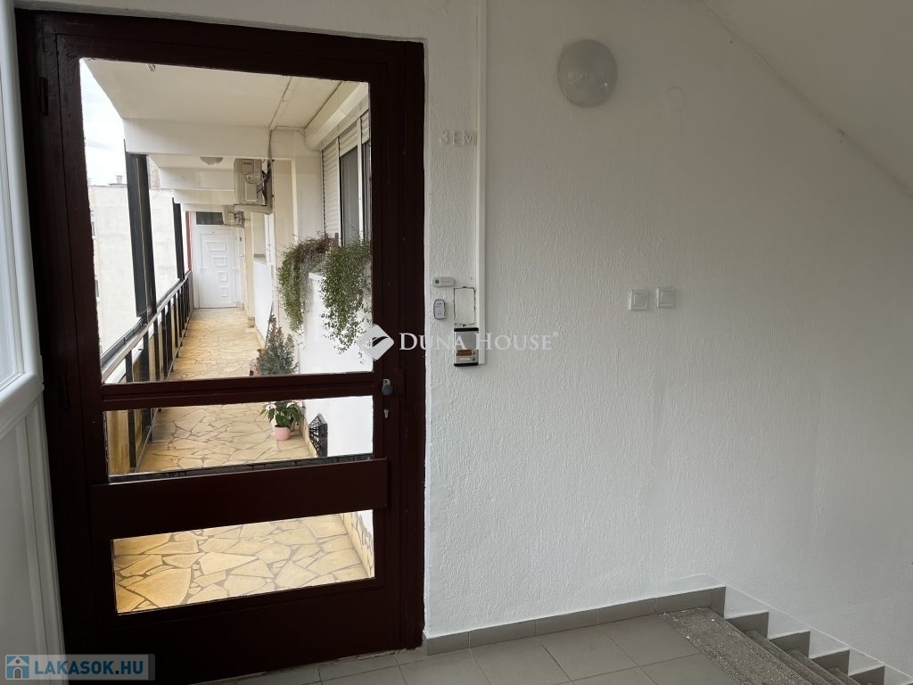 A nappali és a mellette elhelyezkedő szoba már műanyag, szúnyoghálóval szerelt nyílászárókkal rendelkezik. A bejárati ajtó új, több ponton záródó biztonsági ajtó. A homlokzatba simuló erkély árnyékolásáról hibátlanul működő redőnyök gondoskodnak, így a nyári forróságban is használható. A lakáshoz az épület földszintjén egy 3m2-es tároló is tartozik. Az épület előtt, árnyékot adó lombos fák alatt a parkolás ingyenes.