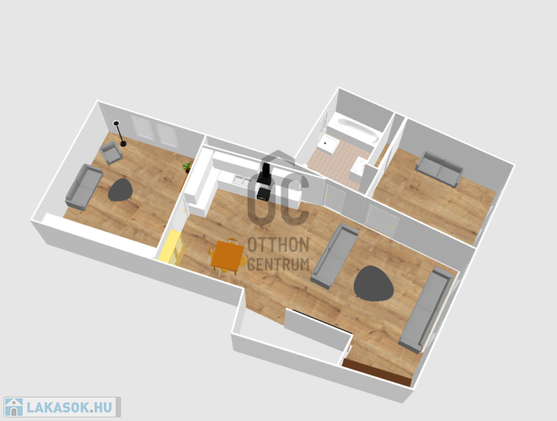- A hálószobák az egybe nyitott nappali-étkező-konyhából nyílnak