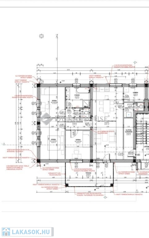 A 115 m²-es otthon három hálószobával, egy fürdőszobával, külön két WC-vel, amerikai konyhás nappalival és kamrával rendelkezik.