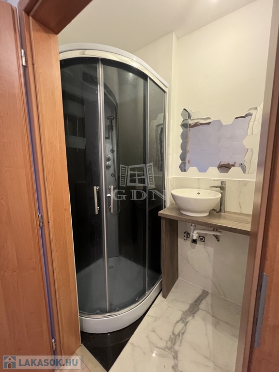 Konyhája beépítetlen, belőle nyíló fürdőszoba zuhanyzós.