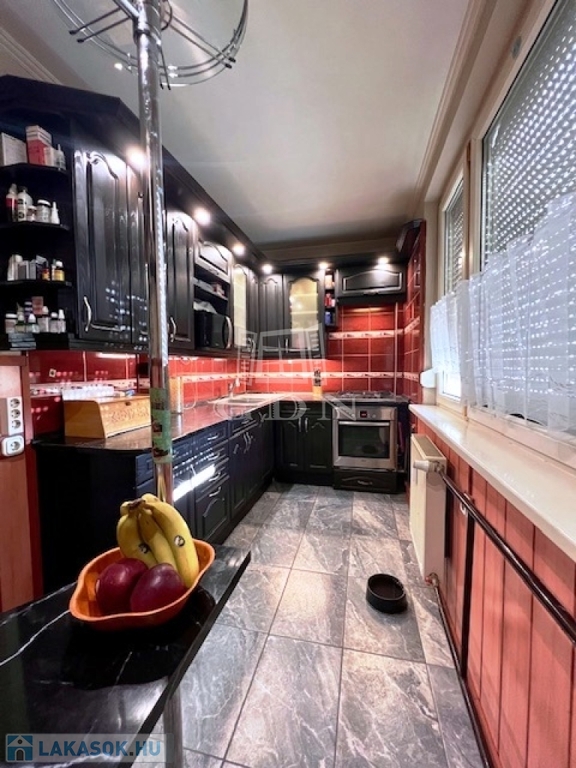 A beépített konyhabútor gépesítve, és a beépített bútorok a vételár részét képezik. A lakáshoz közös használatú tároló tartozik.