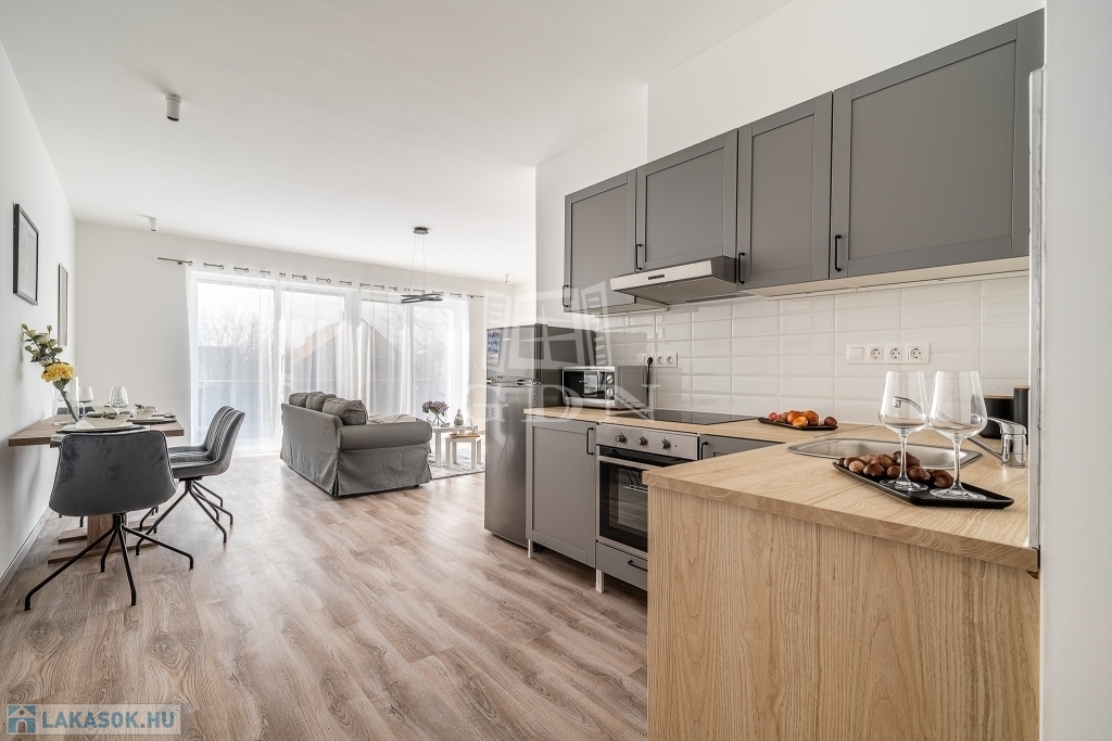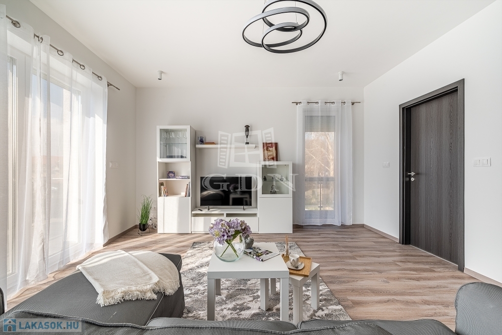 Szigetszentmiklós-Lakihegyen új építésű exkluzív lakóparkban, a II. ütemben megvalósult “C” épületben kínálunk eladásra, egy FÖLDSZINTI KERTKAPCSOLATOS nettó hasznos 64,85 m² lakóterületű nappali + 2 szobás új építésű lakást, 5,28 m² terasszal.