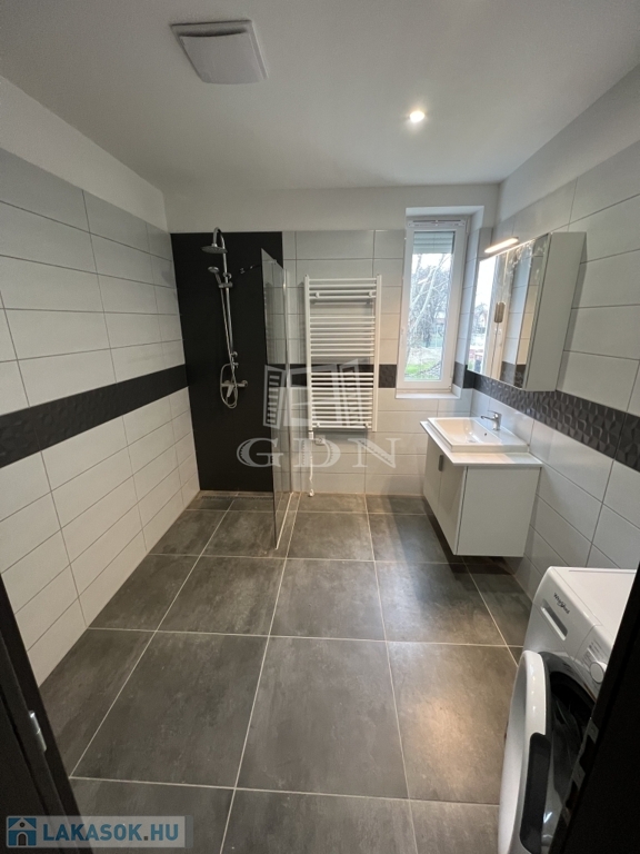 A fürdőszobában és a WC-ben hőszivattyús padlófűtés és elektromos törölközőszárító gondoskodik a komfortérzetről.