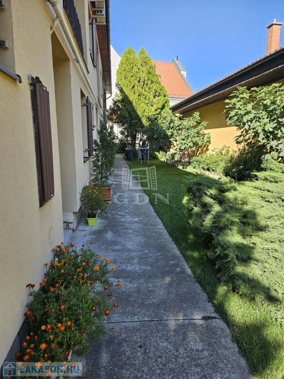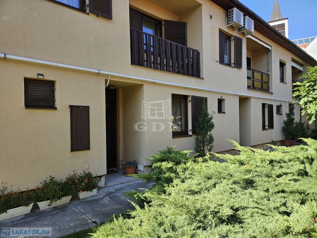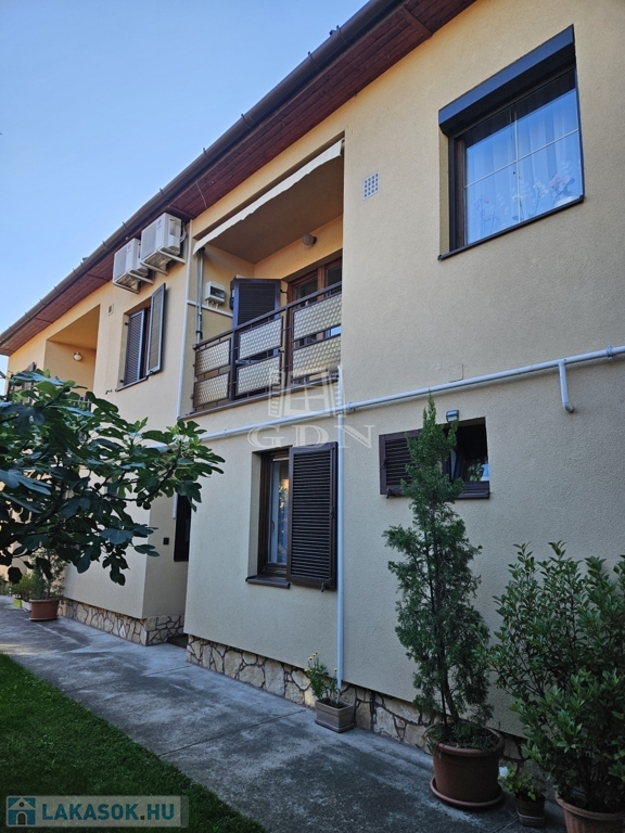Az épület körbejárható. A lakások szépen gondozott saját előkerttel, közös oldalkerttel, fúrt kútról működő locsoló hálózattal, valamint több autó számára biztosított beállási lehetőséggel rendelkeznek.