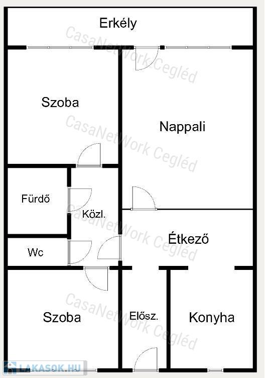 - Térelosztás: 3 szoba, konyha-étkezővel, közlekedő, folyosó, fürdőszoba, külön WC, ERKÉLY !