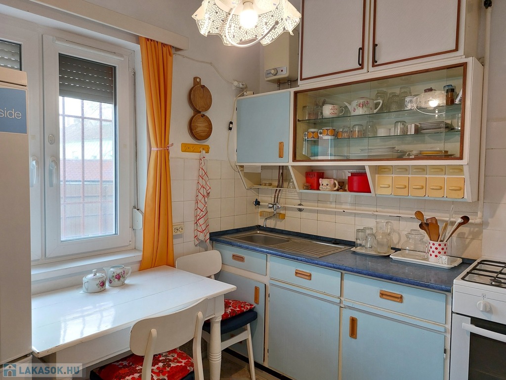 - a bejárati ajtó illetve a konyhai és a külön nyíló hálóban lévő ablak műanyag hő,- és hangszigetelőre lett cserélve; a többi ablak és a beltéri ajtók még az eredeti fa nyílászárók