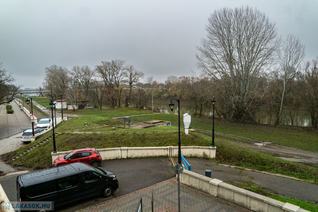 A lakás tágas, világos terei és nagy ablakfelületei egész nap természetes fényt biztosítanak, miközben a nappaliból és/vagy erkélyről zavartalan kilátás nyílik a Tiszára – nem egy „majd egyszer látni fogod” panoráma, hanem az a bizonyos wow élmény.