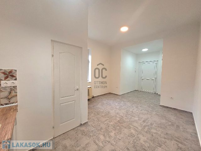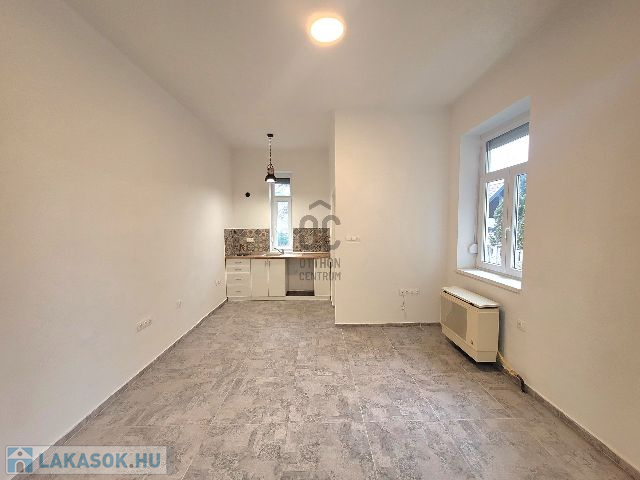 2. - iroda/raktár: Jelenleg egy közlekedőből és egy egy légtérből álló, felújítandó helyiség (ablakai már műanyag nyílászárókra lettek cserélve).