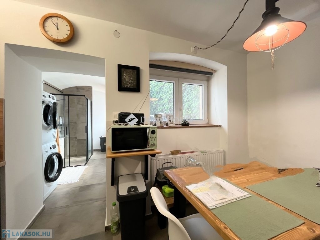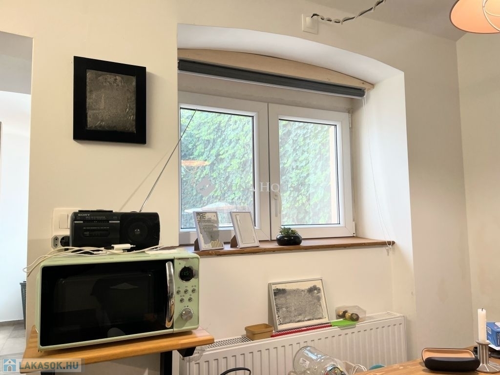 A fűtést és a melegvizet egy gáz-cirkó kazán adja.Az ingatlan a társasház udvar felőli részén található, ahol az ablak előtt egy kis zöldterület gyönyörködteti a szemet, de akár kávézósaroknak is használható